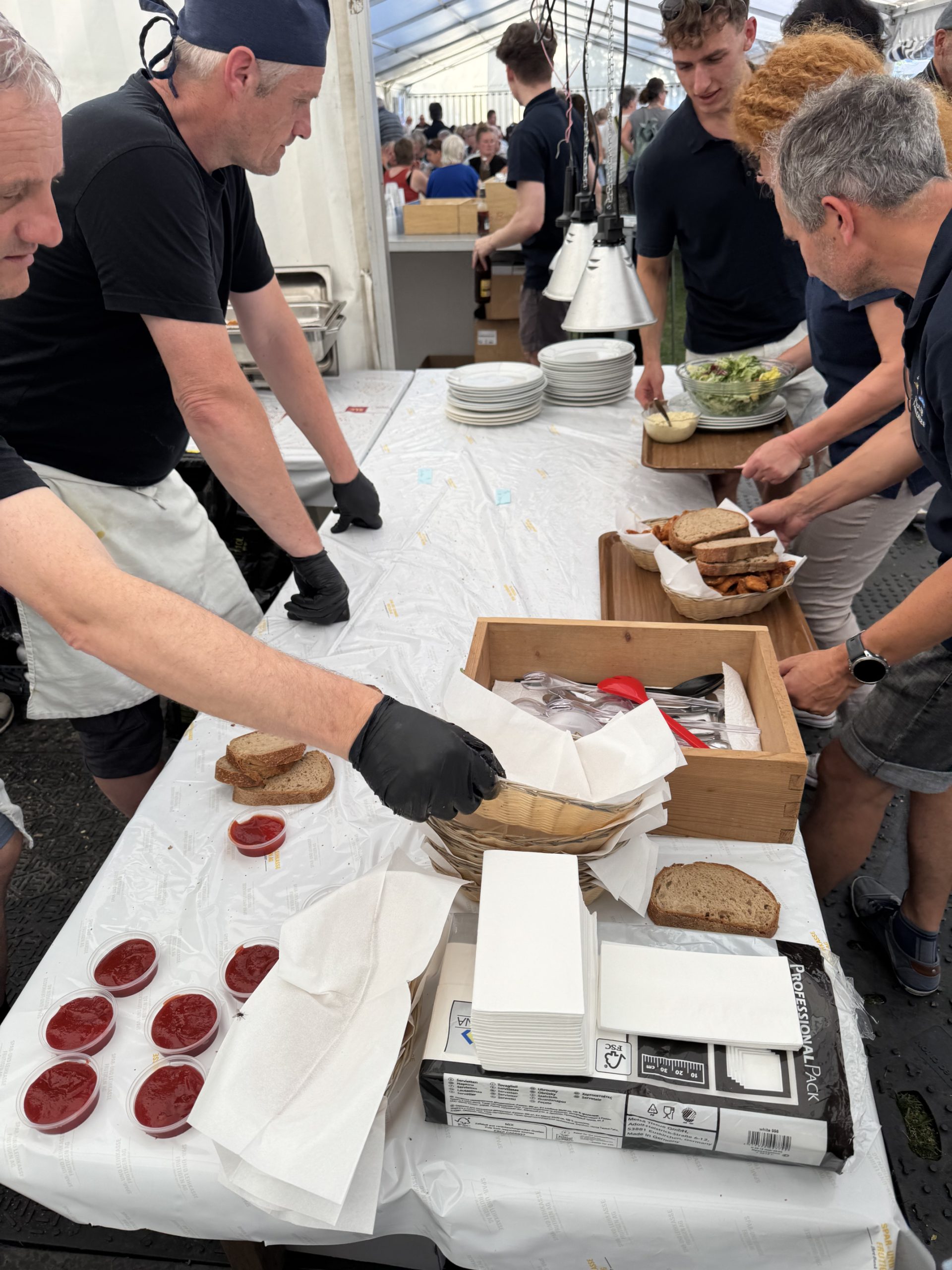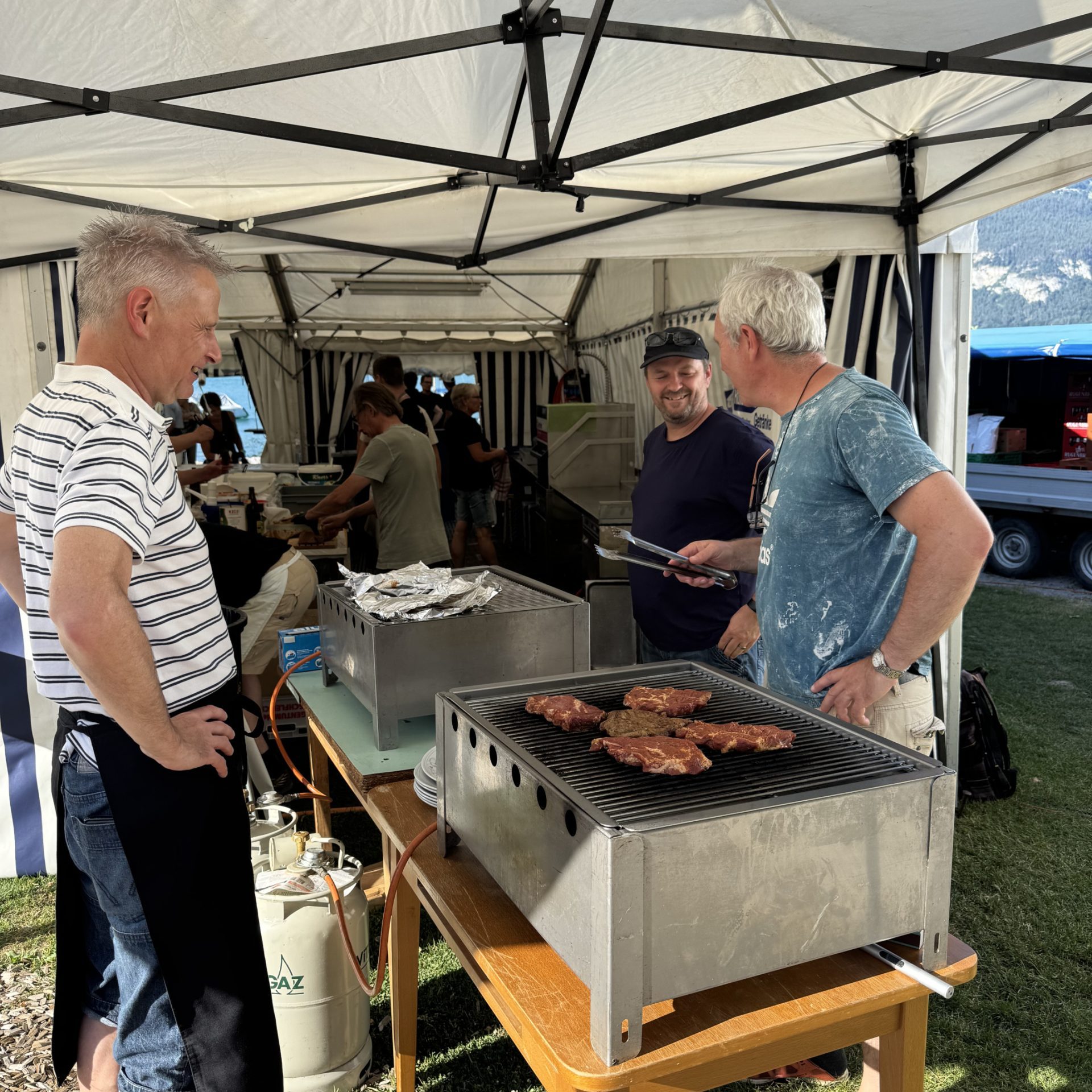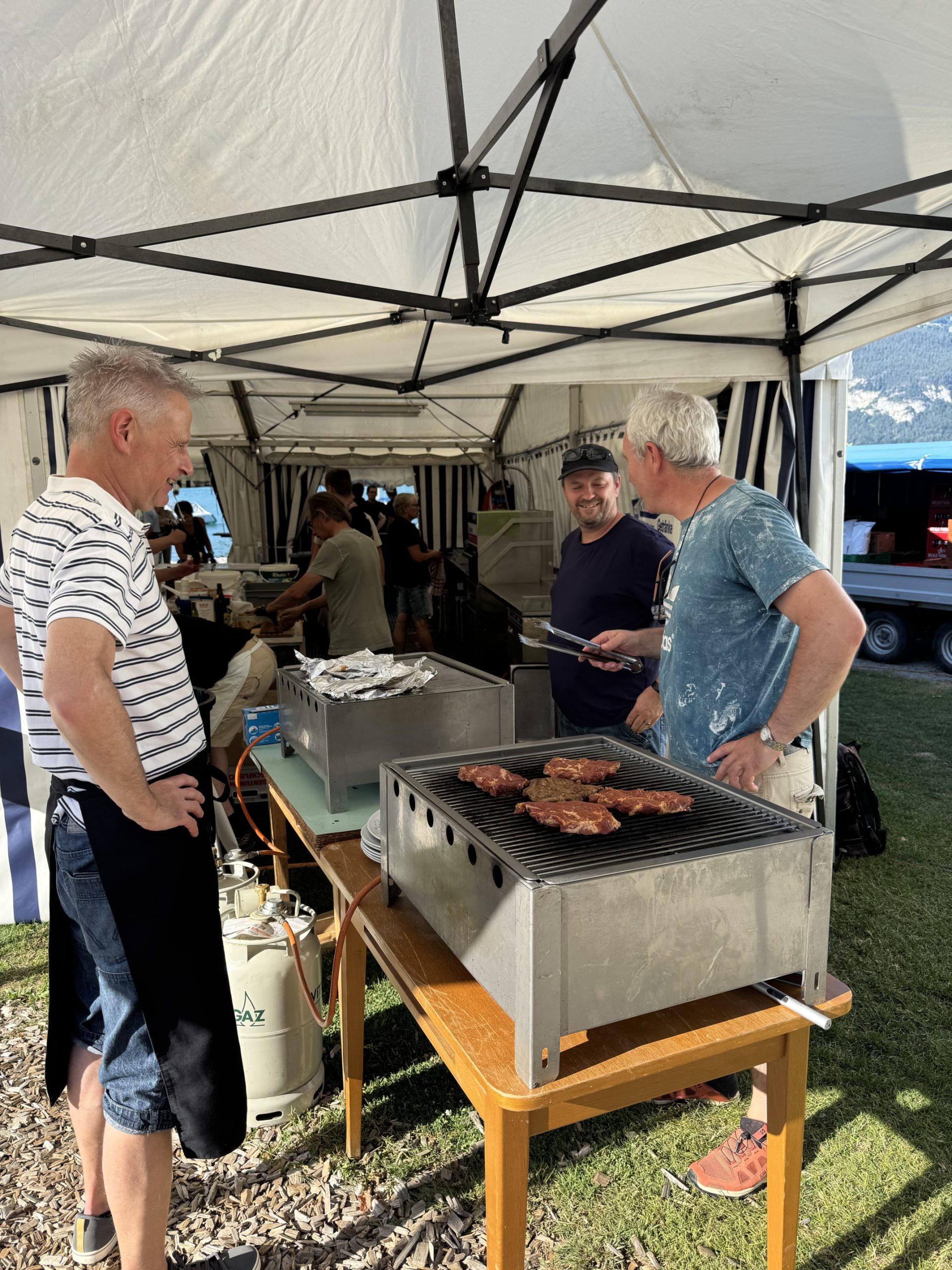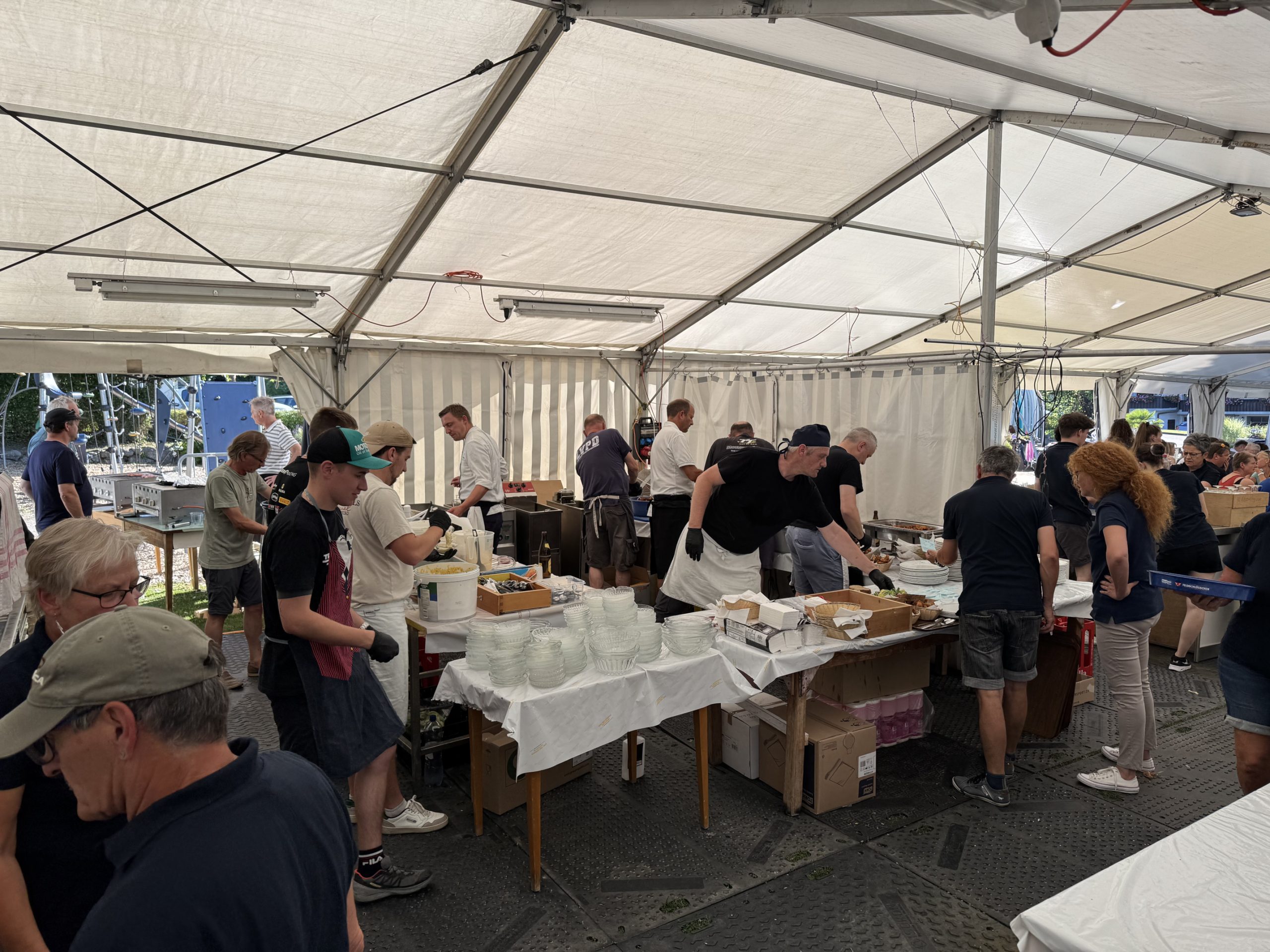 Alle 2 Jahre findet auf der Seewiese beim Tourismus-Büro in Faulensee unser Sommerfest / Fischessen statt. Nach langer Vorbereitungsphase wurde an 2 Abenden das Ganze Festzelt aufgebaut, alles eingerichtet und noch der letzte Feinschliff getätigt, so dass am Freitag pünktlich um 18:00 der Festbetrieb starten konnte. Trotz des grossen Ansturmes bei bestem Wetter, konnten unsere Helfer die Gäste am Freitag und am Samstag bewirten.